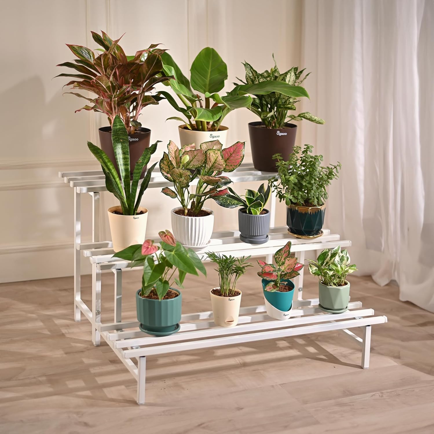 With three spacious tiers, it provides ample room to display multiple flower pots, planters, or decorative items while saving valuable floor space. The open design ensures proper air circulation and sunlight exposure, making it ideal for living rooms, balconies, patios, or gardens.