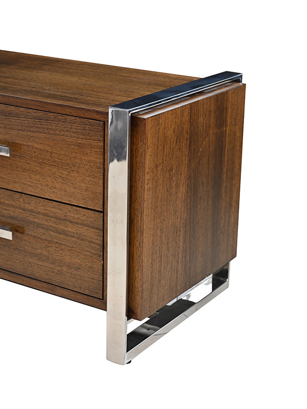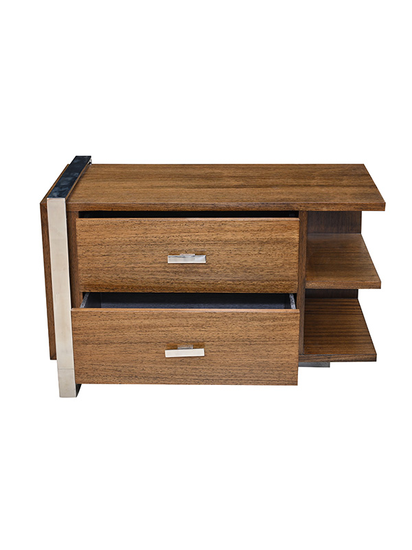 Designed for the modern home, the DeepZone Gridline Bedside Unit blends clean aesthetics with intelligent storage. Crafted from richly finished wood and accented with sleek chrome handles and trim, this piece strikes the perfect balance between form and function.
