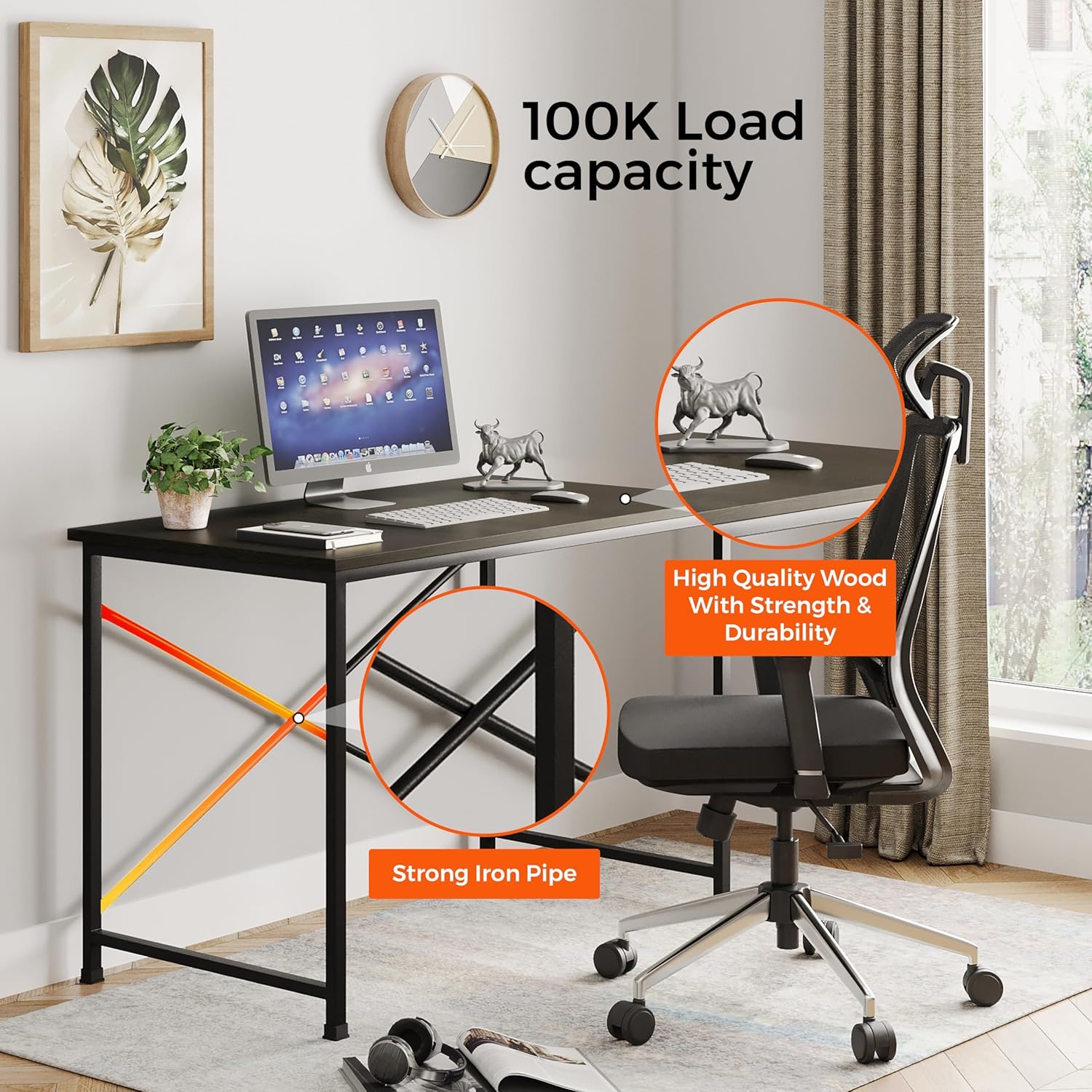 ✅ Spacious Work Area: Ample tabletop space for your laptop, monitor, accessories, and decor items.